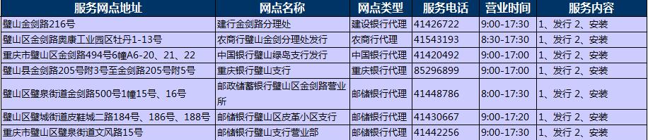 ► 璧山區(qū)ETC服務(wù)網(wǎng)點: