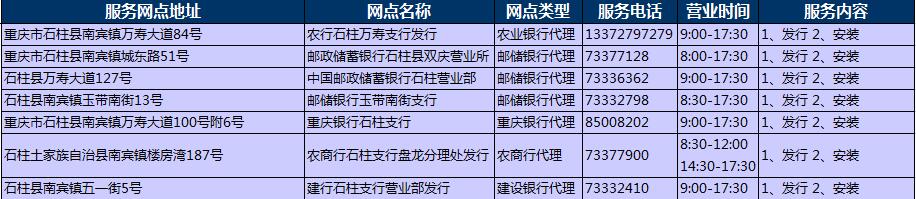 ► 石柱縣ETC服務(wù)網(wǎng)點: