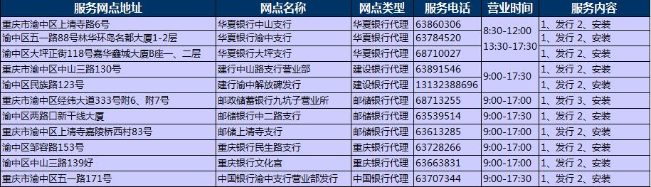 | 合川網(wǎng)點 | 42702230 | 周一至周五【9:00 - 16:00】 | 合川涪江二橋高速公路收費站 |