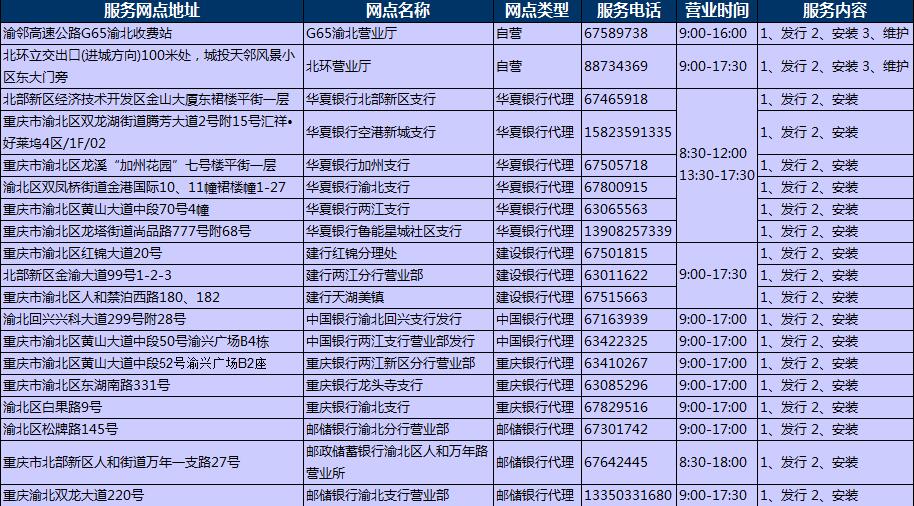 ►渝北區(qū)ETC服務(wù)網(wǎng)點: