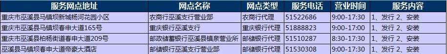 ► 巫溪縣ETC服務(wù)網(wǎng)點: