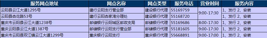 ► 云陽縣ETC服務(wù)網(wǎng)點: