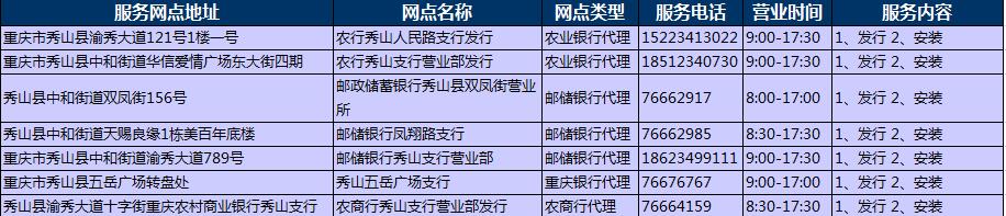 ► 秀山縣ETC服務(wù)網(wǎng)點: