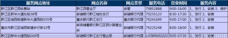 ► 黔江區(qū)ETC服務(wù)網(wǎng)點: