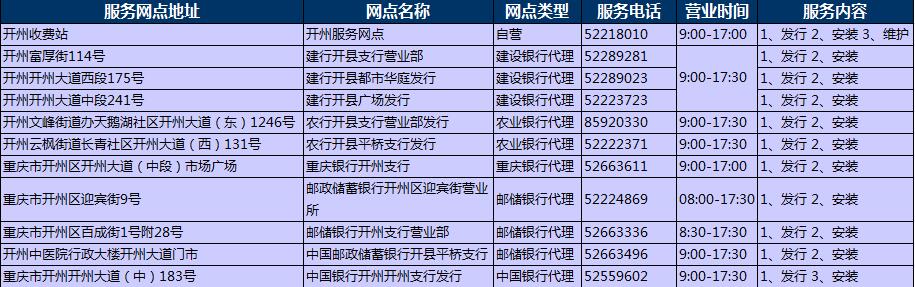 ► 開州區(qū)ETC服務(wù)網(wǎng)點: