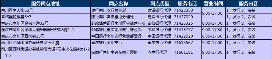 ► 南川區(qū)ETC服務(wù)網(wǎng)點: