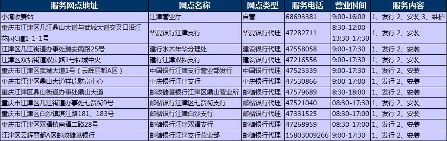 ► 江津區(qū)ETC服務(wù)網(wǎng)點: