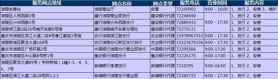 ► 涪陵區(qū)ETC服務(wù)網(wǎng)點: