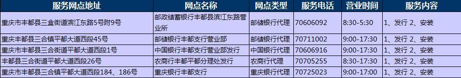 ► 豐都縣ETC服務(wù)網(wǎng)點: