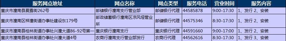 | 潼南網(wǎng)點 | 45261535 | 全年無休【9:00-16:00】 | 潼南收費站 |