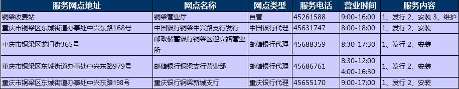 ► 銅梁區(qū)ETC服務(wù)網(wǎng)點: