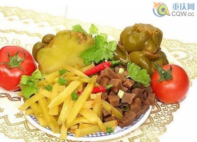 以青菜頭為原料,這種青菜頭有肥大、柔嫩、多汁的瘤狀莖、俗稱菜頭。其加工方法為精選質(zhì)嫩、形好、新鮮的青菜頭,經(jīng)剝皮、穿串、晾曬、腌制、上囤、再腌制、壓榨、修剪、挑筋、整形、分級、淘洗、拌料、裝壇、封口等工序制成。修剪整形,濾凈鹽水,然后拌以食鹽、上等海椒面、砂仁、白胡椒、八角、山奈、茴香、甘草、姜干、花椒等多種名貴植物香料粉,入陶壇密封發(fā)酵。產(chǎn)品色澤青綠,辣粉鮮紅,塊形均勻,質(zhì)地脆嫩,香味濃郁,咸淡適口,下鍋不軟,久貯愈香。營養(yǎng)價值甚高。有助消化、解油膩、增食欲的功效。