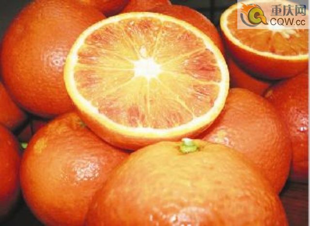 渝璧玉血橙屬晚熟柑桔塔羅科血橙新系中選育出來的又一新品種,該品種果大、味甜、無核;果色橙紅、特光滑,果肉色深,全為紫紅,脆嫩多汁,酸甜適口,有濃郁的玫瑰香味,果品中含有豐富的維生素A及胡蘿卜素,對防止心血管疾病和抑制癌癥發生有幫助。