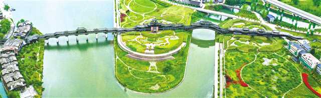 廊橋,是黔江地域文明中最浪漫的符號。濯水風雨廊橋、白石風雨廊橋、小南海風雨廊橋、橋梁村風雨廊橋、武陵水岸風雨廊橋……廊橋為人們遮風避雨,也為人們提供休憩、談天、歌舞方便。特別是濯水風雨廊橋,橋梁全木卯榫,飛檐翹角,橫跨阿蓬江,再跨蒲花河,全長658米,有濯河懷遠、金鐘飛韻、長虹臥波、蒲花龍吟四秩,亭閣相銜其間,楹聯輝映其里,號稱“世界第一風雨廊橋”“中國楹聯文化名橋”。
