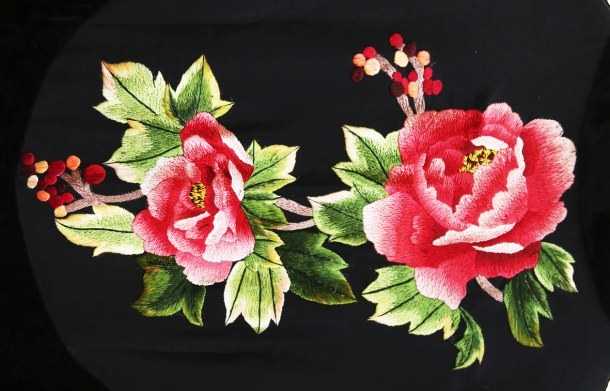 是用絲線繡制的手工品,具有配色大膽、對比強烈、樸實無華等特點,主要產品有繡花鞋、手帕、胸花、枕套、童帽、荷包等。